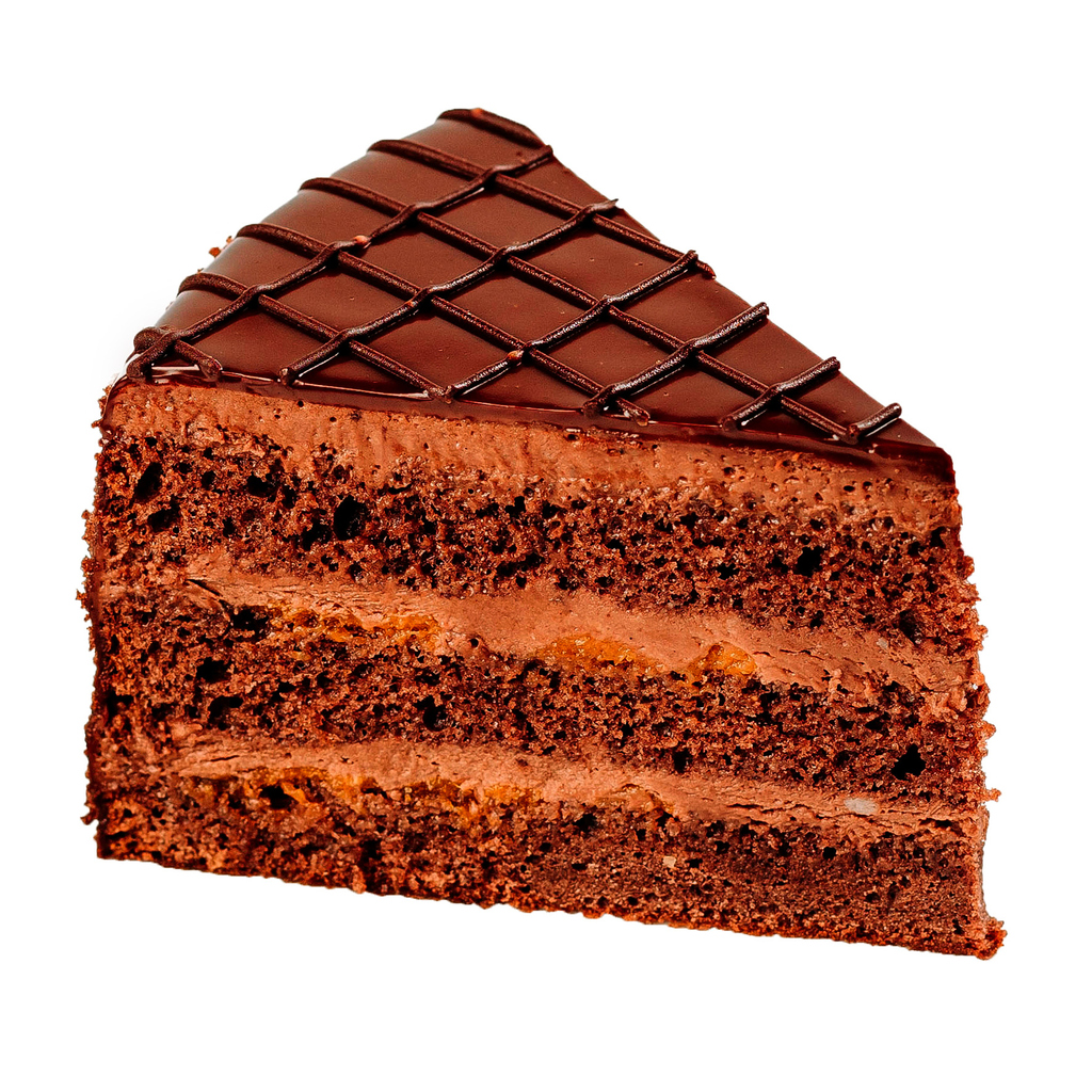 (135) Шоколадный бисквит с заварным шоколадным кремом и легкой абрикосовой начинкой, покрытый шоколадным ганашем.
