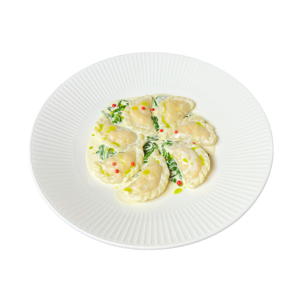 ВАРЕНИКИ С ФОРЕЛЬЮ В СОУСЕ СО ШПИНАТОМ